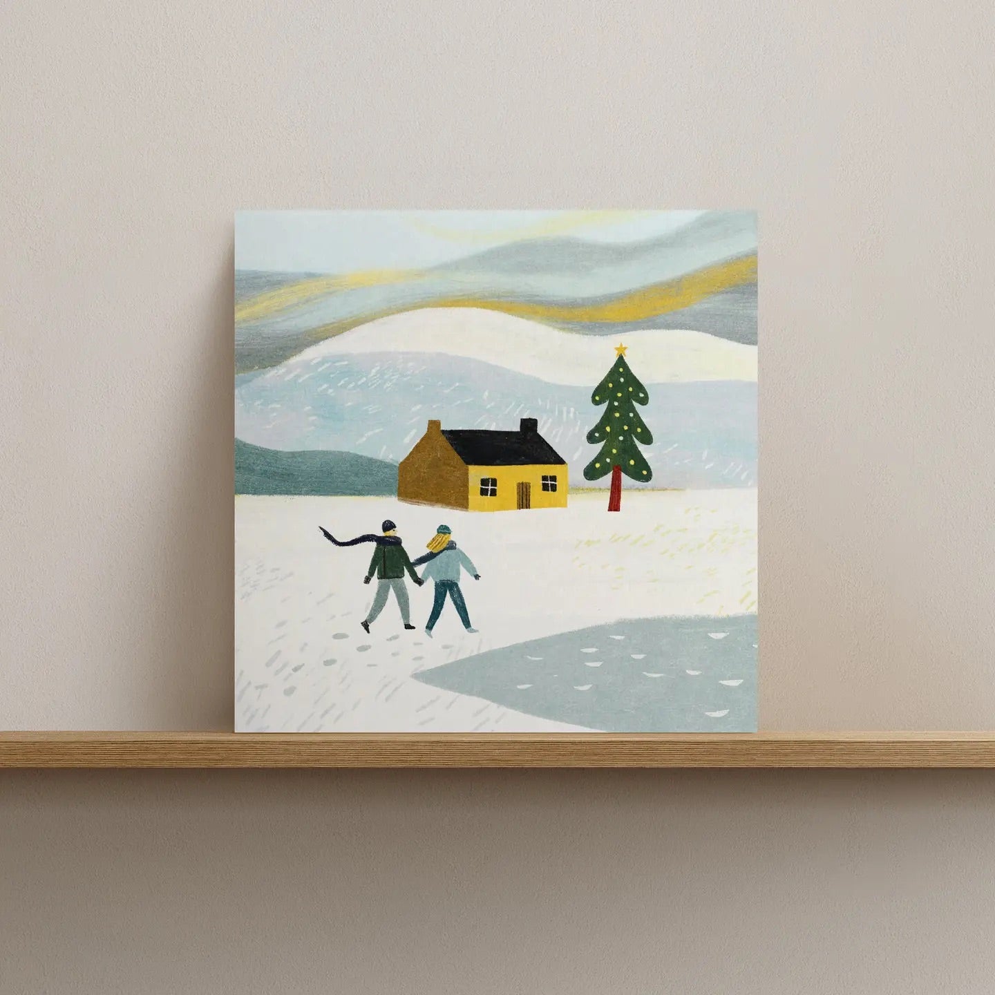 A couple out for a snowy walk, a nice winter time or Christmas Card