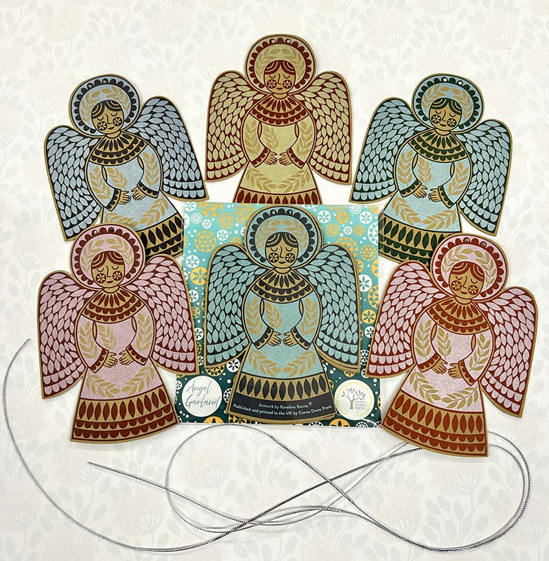 This beautiful Angel Garland features six festive paper angels by artist Karoline Rerrie.