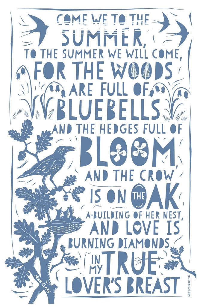 This stylish tea towel features an extract from the poem Summer by John Clare, coupled with a beautiful illustrative style.