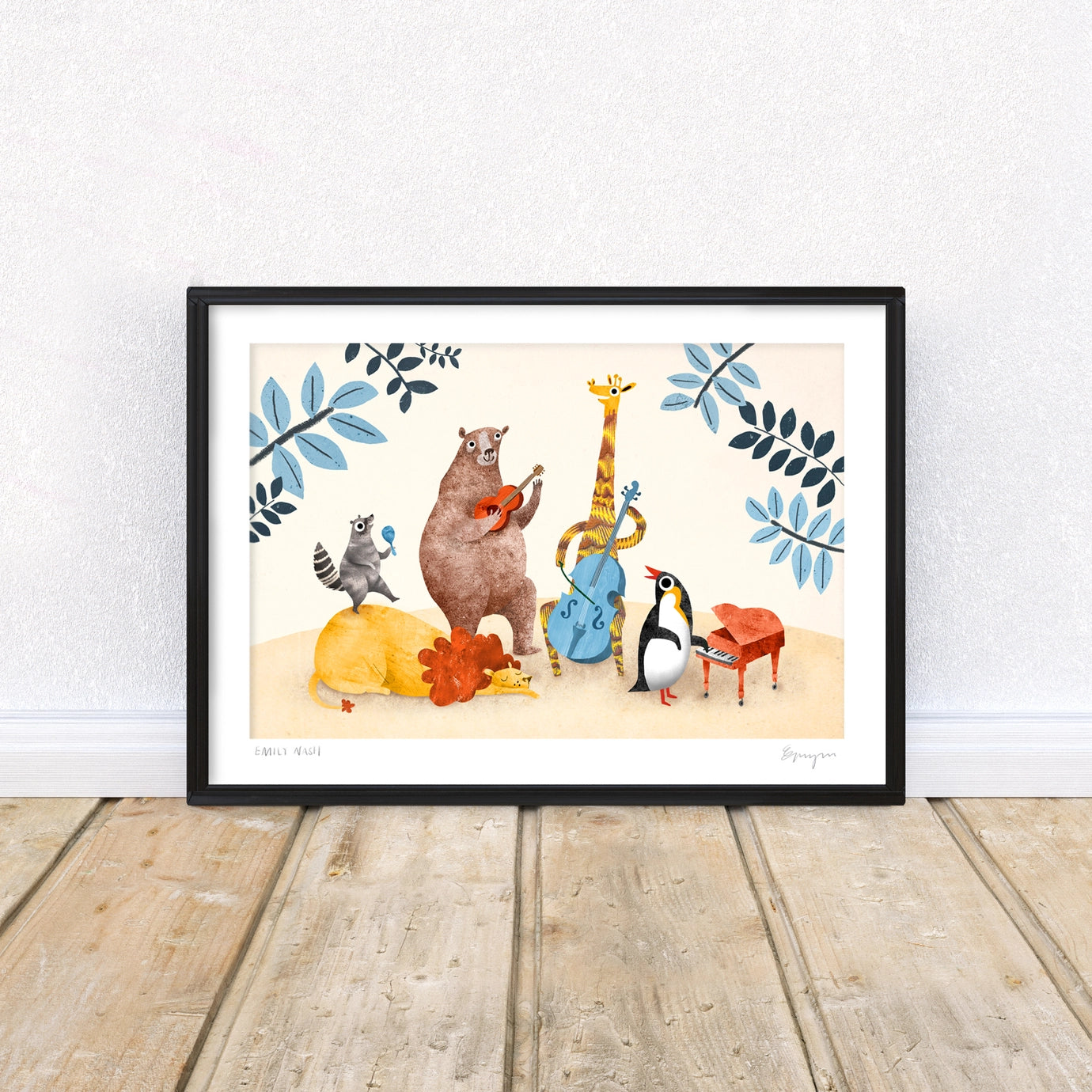 A fun animal band plays a song for you. Perfect for filling a blank space in your bedroom, nursery, living room, or anywhere else!